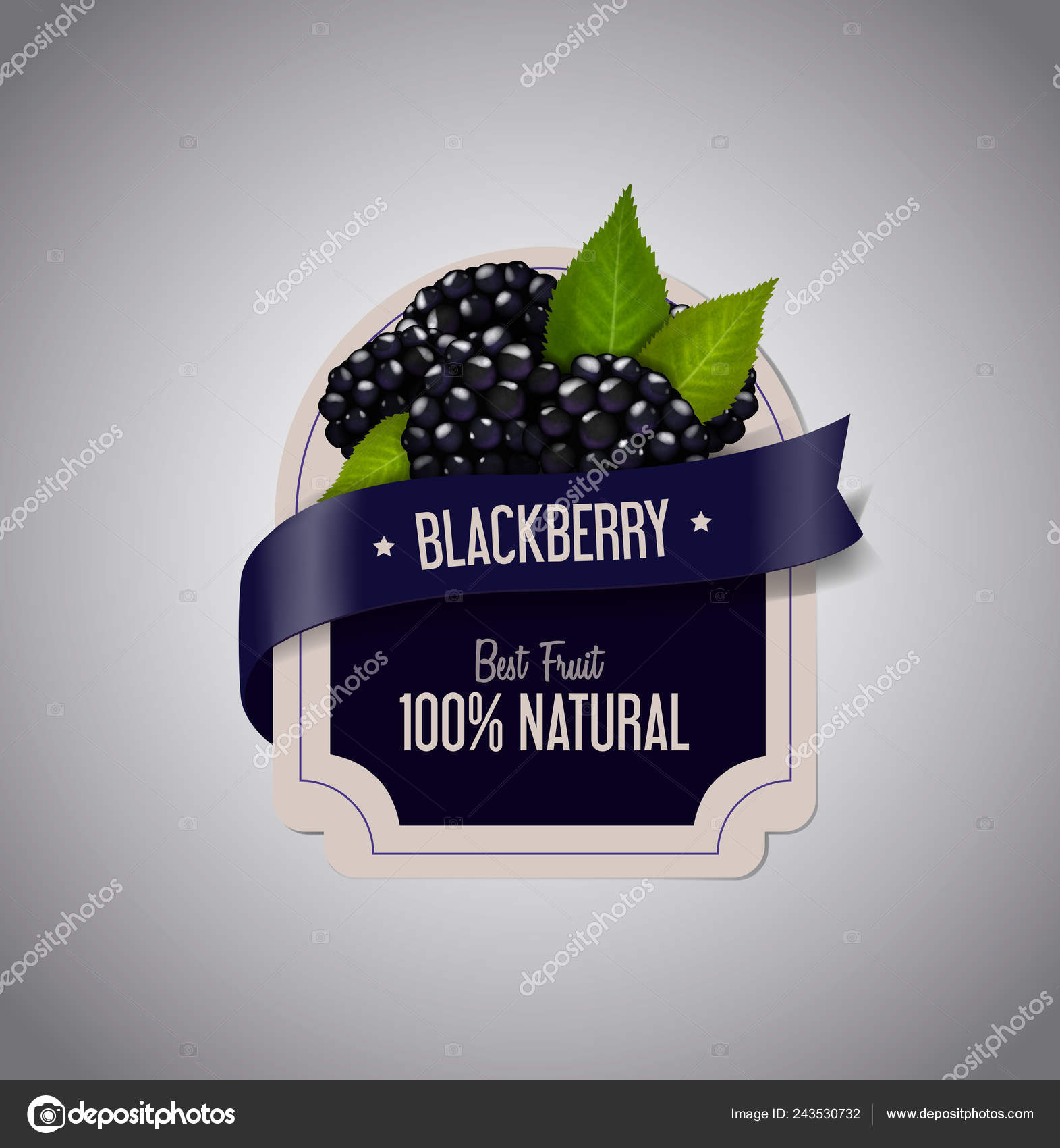 葉の緑と熟したブラックベリーとベリーのラベル ブラックベリー ジャムのラベル デザイン テンプレート ストックベクター C Georgerod