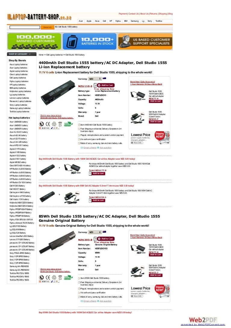 Dell Studio 1555 Battery At Www Laptop Battery Shop Co Nz