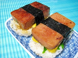 スパムおにぎりです 南国気分 でたん と食べてね レシピ 作り方 By ゆんゆんゅん 楽天レシピ