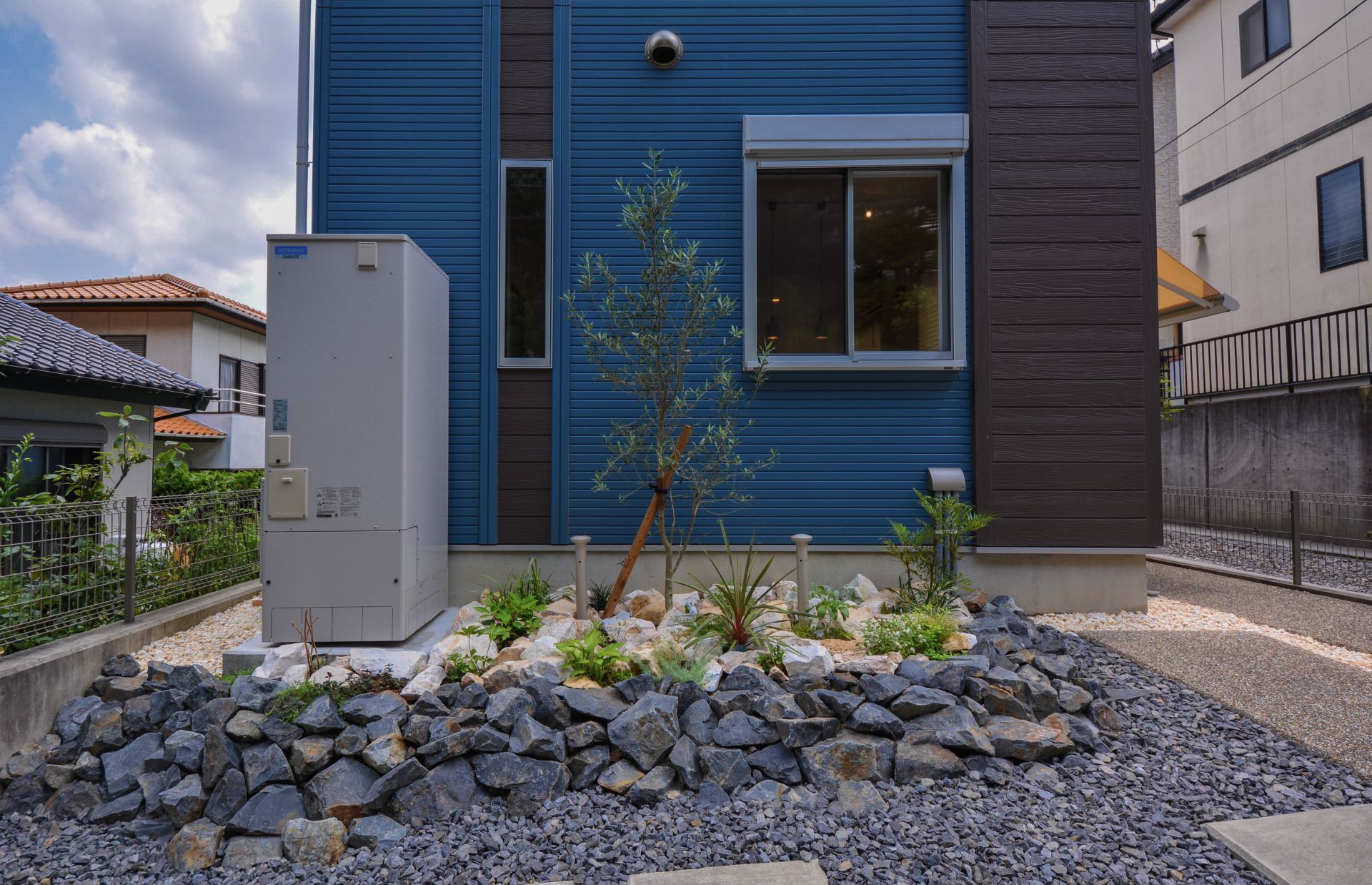 ハウズリフォーム ブルーバックに映えるロックガーデン